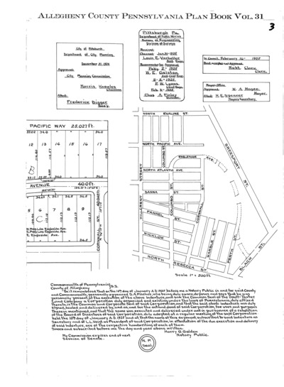"Englewood plan of lots: Situate in 10th Ward, Pittsburgh Pa.: Laid out for Doutt-Texter Land Co." Laid out Nov. 1924; recorded Feb. 28, 1925, Plan Book 31, pp. 2–3. Allegheny County Recorder of Deeds 3783697.